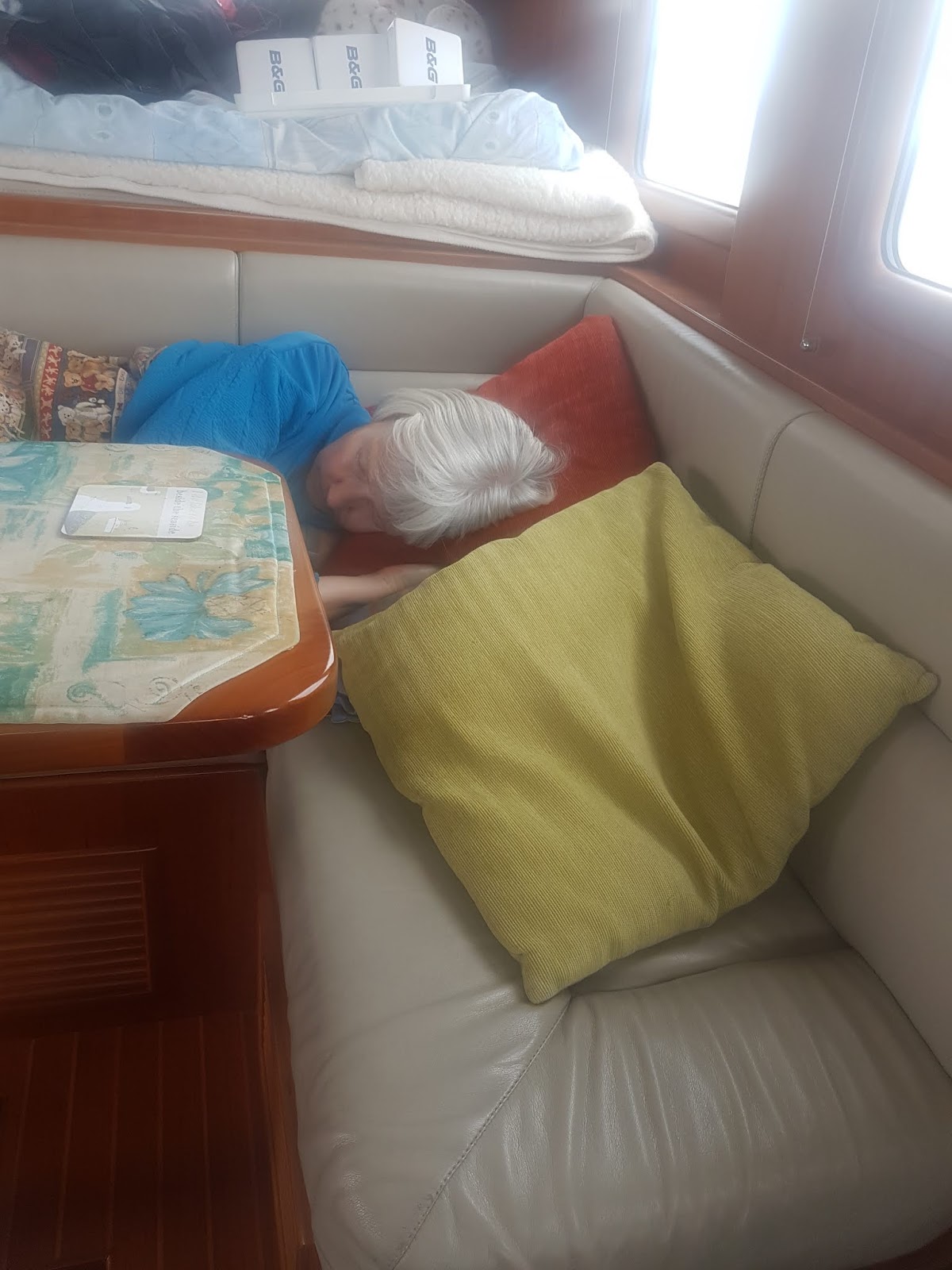 No maintenance issues to report. The keel cooler for the main engine is clearly pretty messed up now as the temperature difference between the flow and return was down to 15 F or so - normally it runs at 30. We guess that a long wide open throttle run would cause some trouble. Good job that the lift out is next on the agenda.