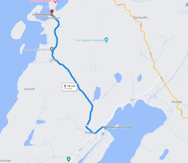 Walking back, the crew was leading and chatting. Our route follows what looks like a road but it becomes a track pretty soon after leaving Ardfern: