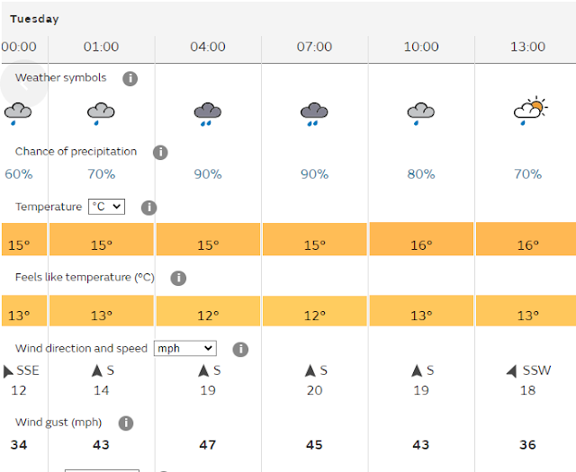 Well, it seems that miracles can happen. After 18 days of Force 6 or higher winds, the local forecast turned into this: